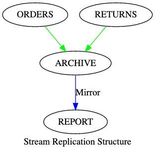 Finally, we create a REPORT stream mirrored from ARCHIVE that is not clustered and retains data for a month. The REPORT Stream does not listen for any incoming messages, it can only consume data from ARCHIVE.